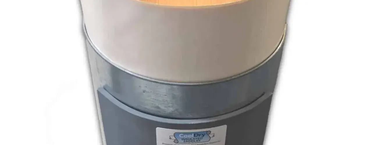 The CoolDry™ Insulated Saddle by Buckaroos is a highly rated saddle system for commercial piping systems that can handle temperatures up to 250°F. It uses a strong phenolic foam pipe Insulation, with a 3.75 PCF rating for piping under 10″ iron pipe size and 5 PCF rating for larger pipes between 11″ and 30″ iron pipe size.